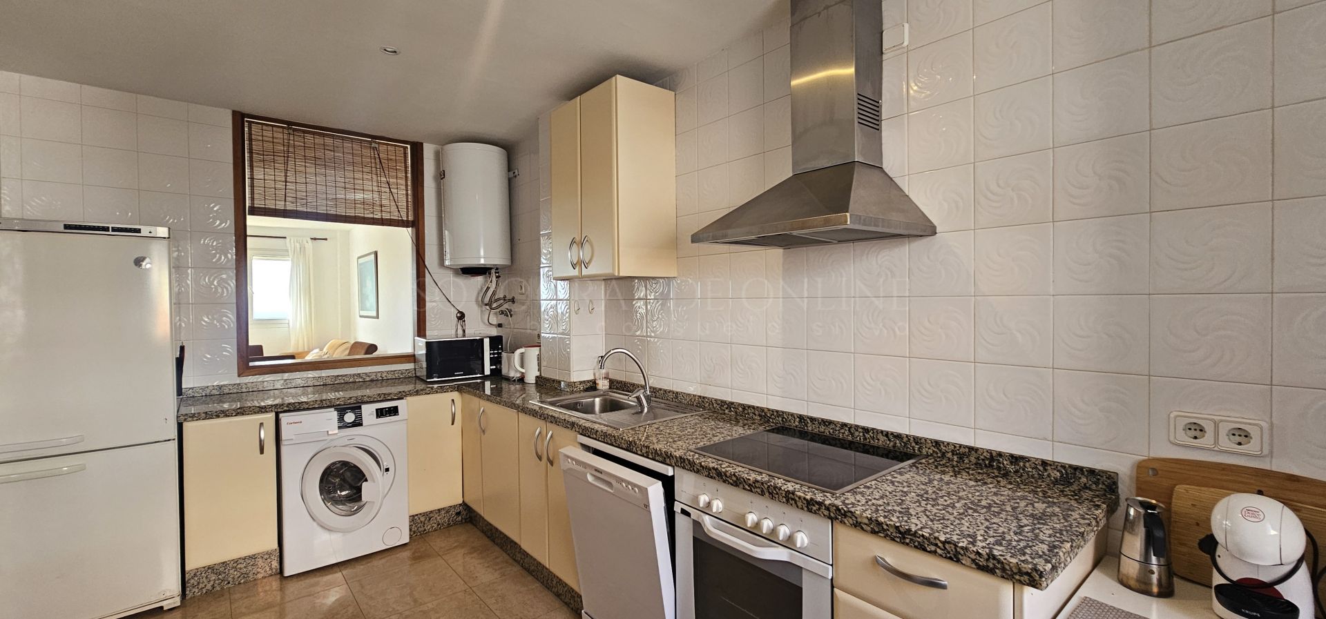 Die Wohnung wird komplett möbliert verkauft und beinhaltet eine voll ausgestattete Küche mit Kühlschrank, Waschmaschine, Geschirrspüler, Mikrowelle und sämtlichem Küchenzubehör für einen komfortablen Aufenthalt. Zudem gibt es eine Klimaanlage vom Split-Typ im Wohnzimmer und im Hauptschlafzimmer.