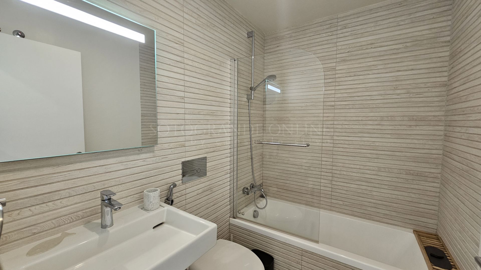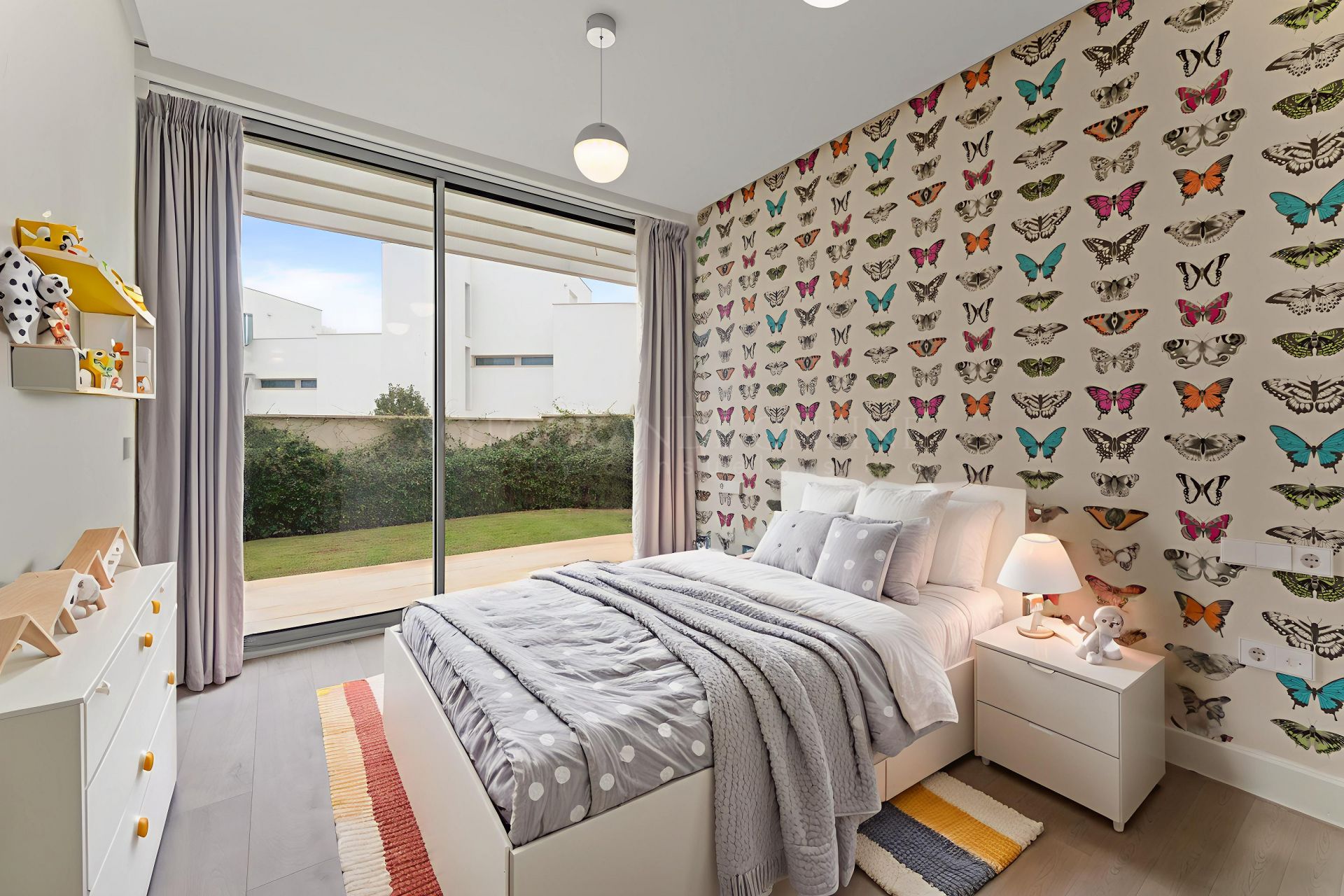 Covering 273 m² over three floors, the home features four spacious bedrooms and three stylish bathrooms. With a clean, contemporary interior—highlighted by a fireplace and glass banisters—it’s offered unfurnished so you can personalise it. Partial sea and mountain views add further appeal.