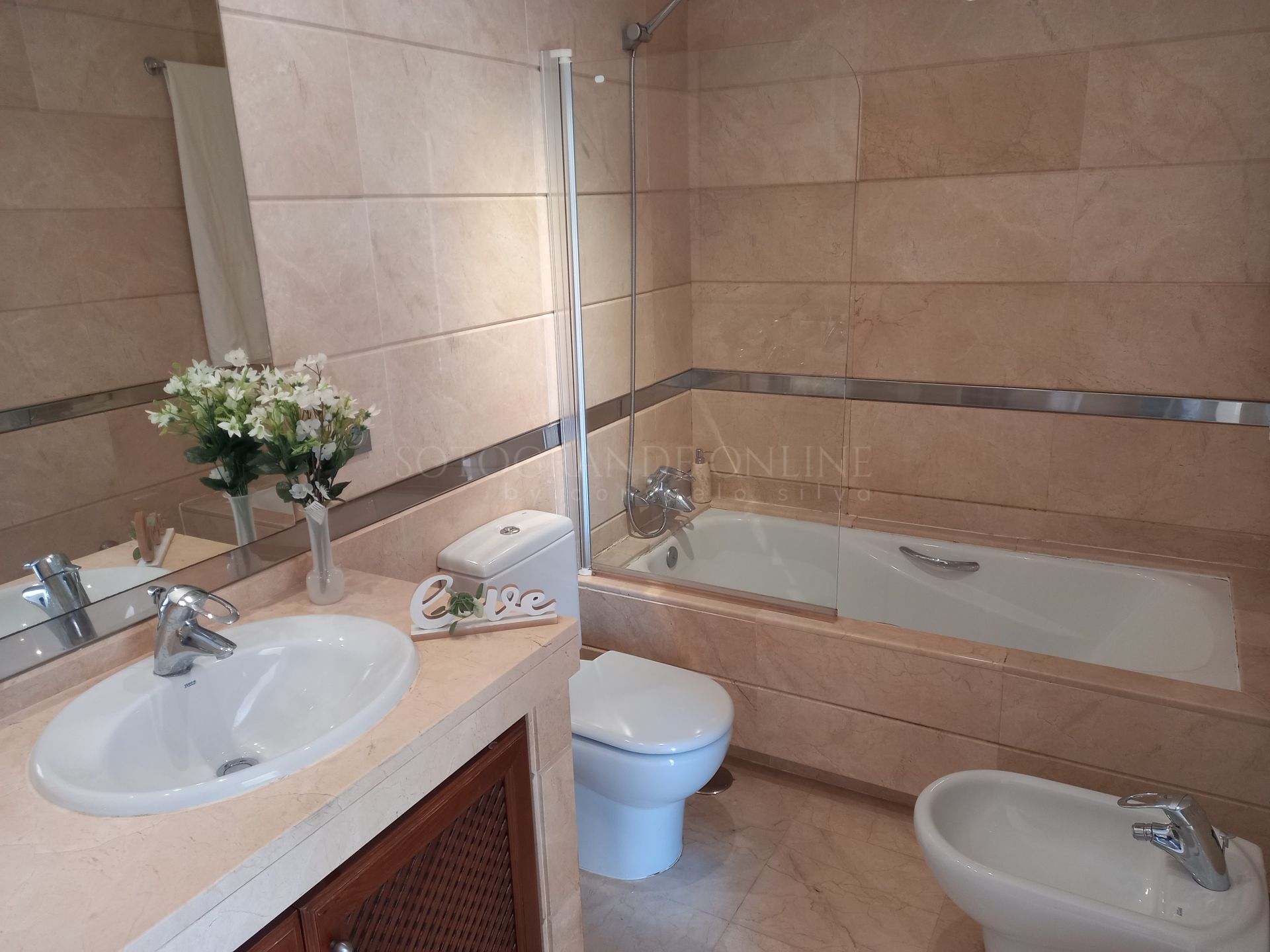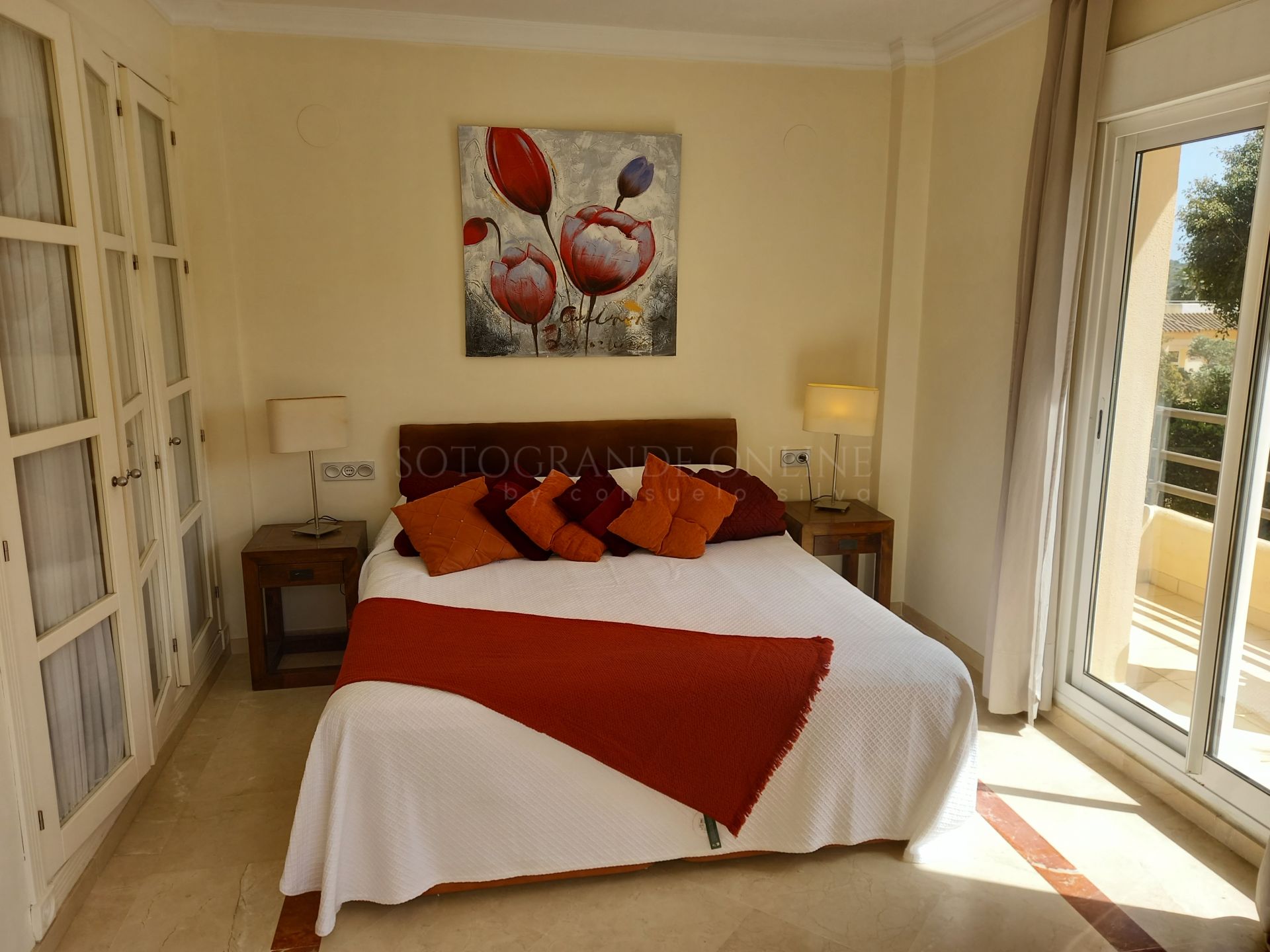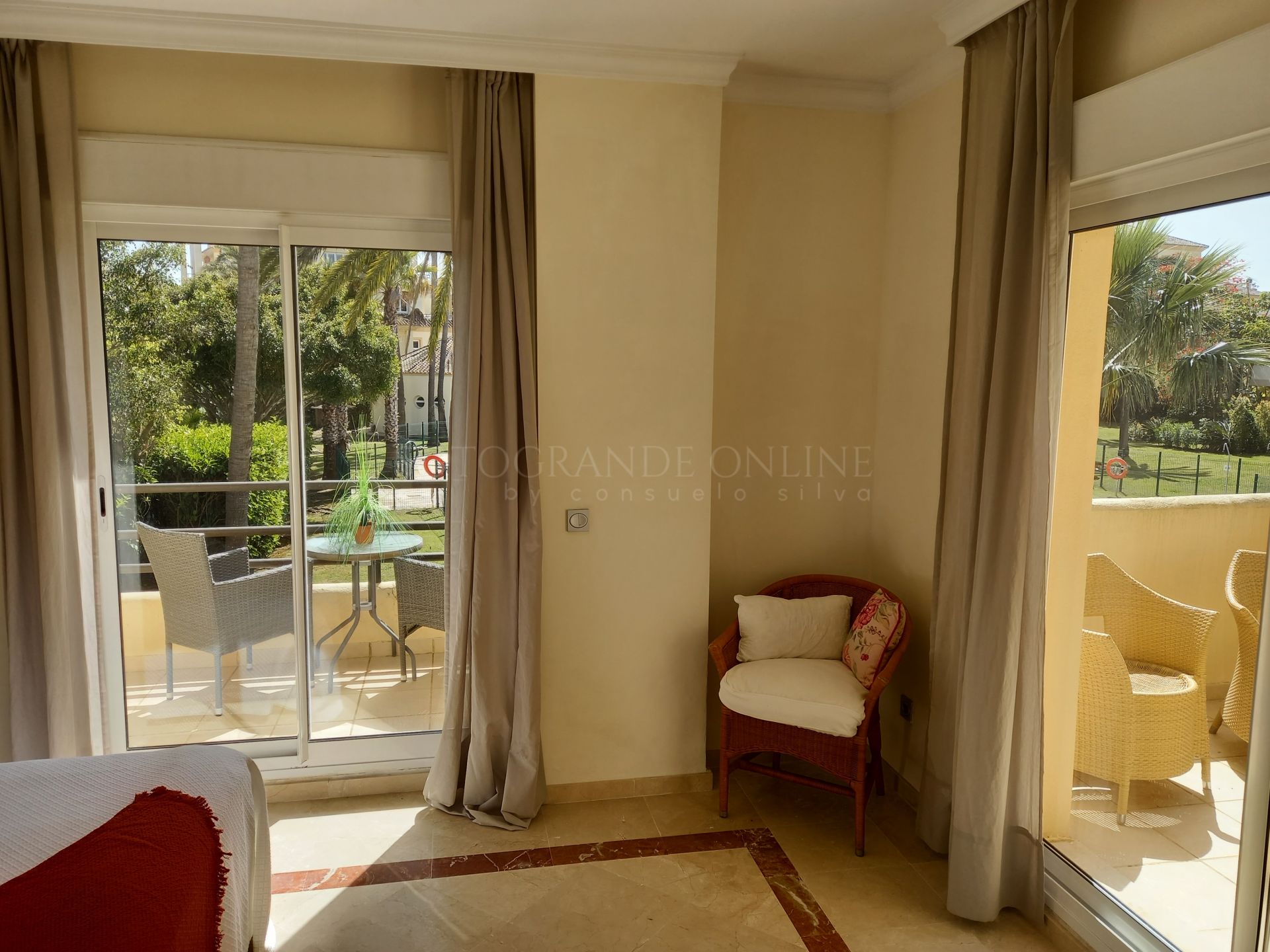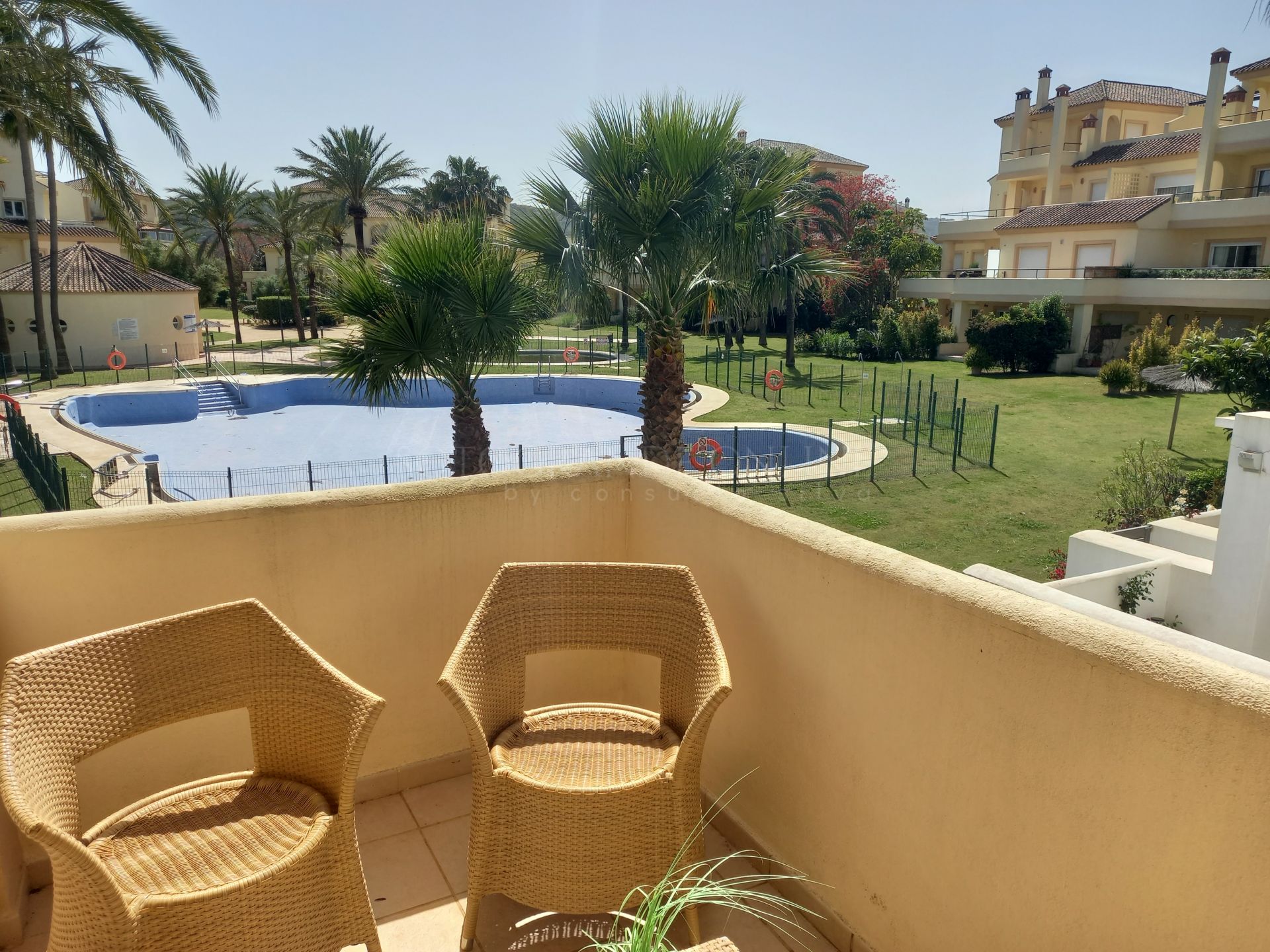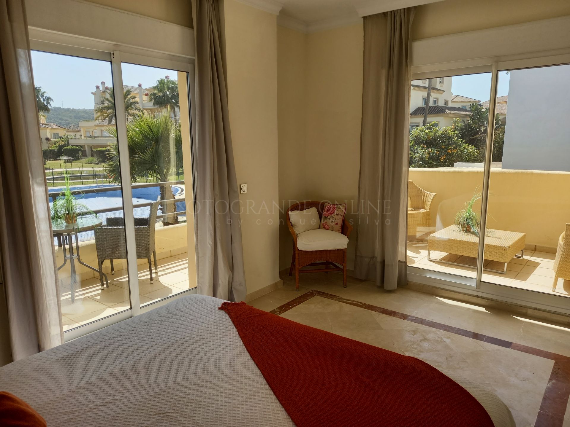Two spacious bedrooms with lovely views and two full bathrooms, accompanied by several generously sized terraces, ideal for enjoying the climate and golf course views.