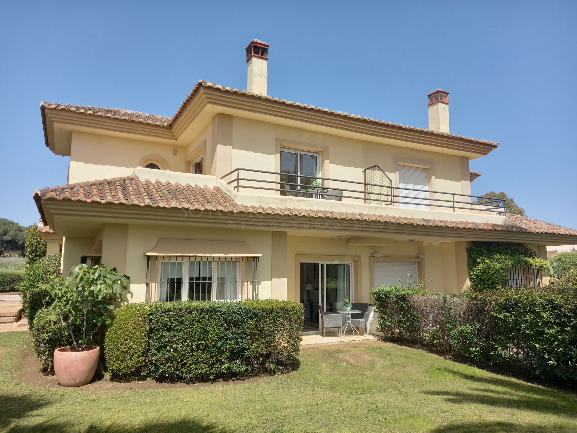 Stunning 2-story home with a solarium, located in the prestigious San Roque Golf community, offering easy access to all the amenities in the area. The property features a built area of approximately 256.44 m², a private garden of 106.42 m² and covered parking for 2 cars.